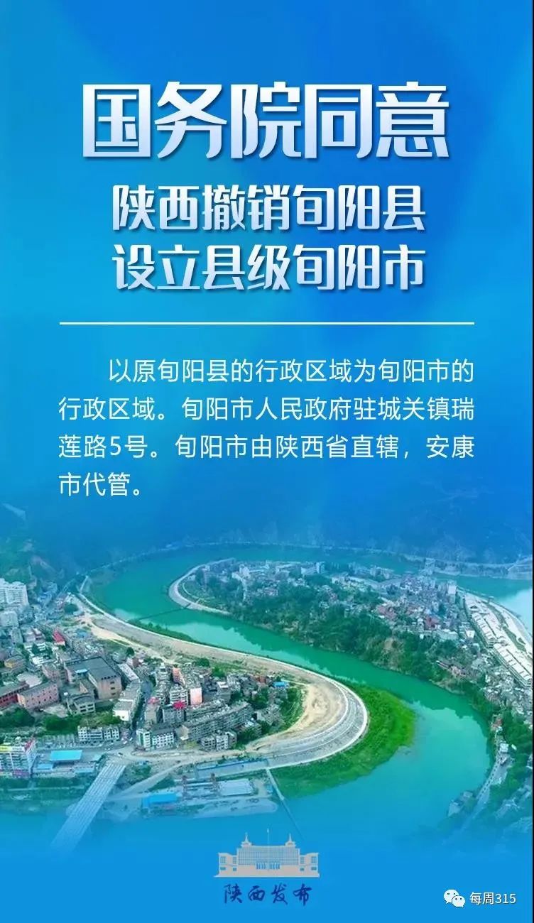 近日,经国务院批准,同意陕西撤销旬阳县,设立县级旬阳市,以原旬阳县的行政区域为旬阳市的行政区域。旬阳市人民政府驻城关镇瑞莲路5号。旬阳市由陕西省直辖,安康市代管。