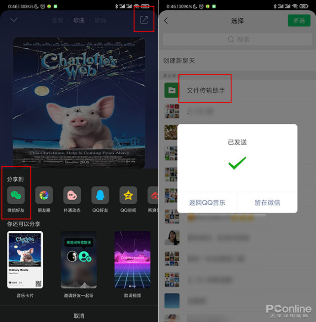 将QQ音乐分享到“文件传输助手”