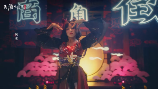 《天涯明月刀手游版》作为一款仙侠游戏,乔振宇和严屹宽两位古装武侠剧出身的演员满足了最基本受众的需求,同时阿朵、薇娅和谢安然覆盖了更多的用户群体。不过,12月买量素材中出现次数最多的代言人其实是程潇。程潇的灵狐舞MV与游戏深度联动,游戏中可以直接领取相关动作,对于程潇粉丝来说这种级别的联动是很难拒绝的。