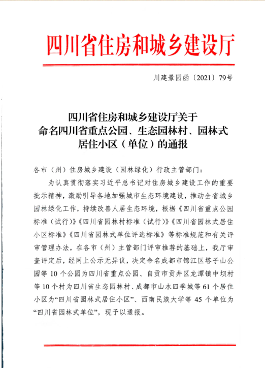 据了解,有东原长岛、富临桃花岛、富临绵州水郡、英郦庄园等4个小区被命名为“四川省园林式居住小区”。