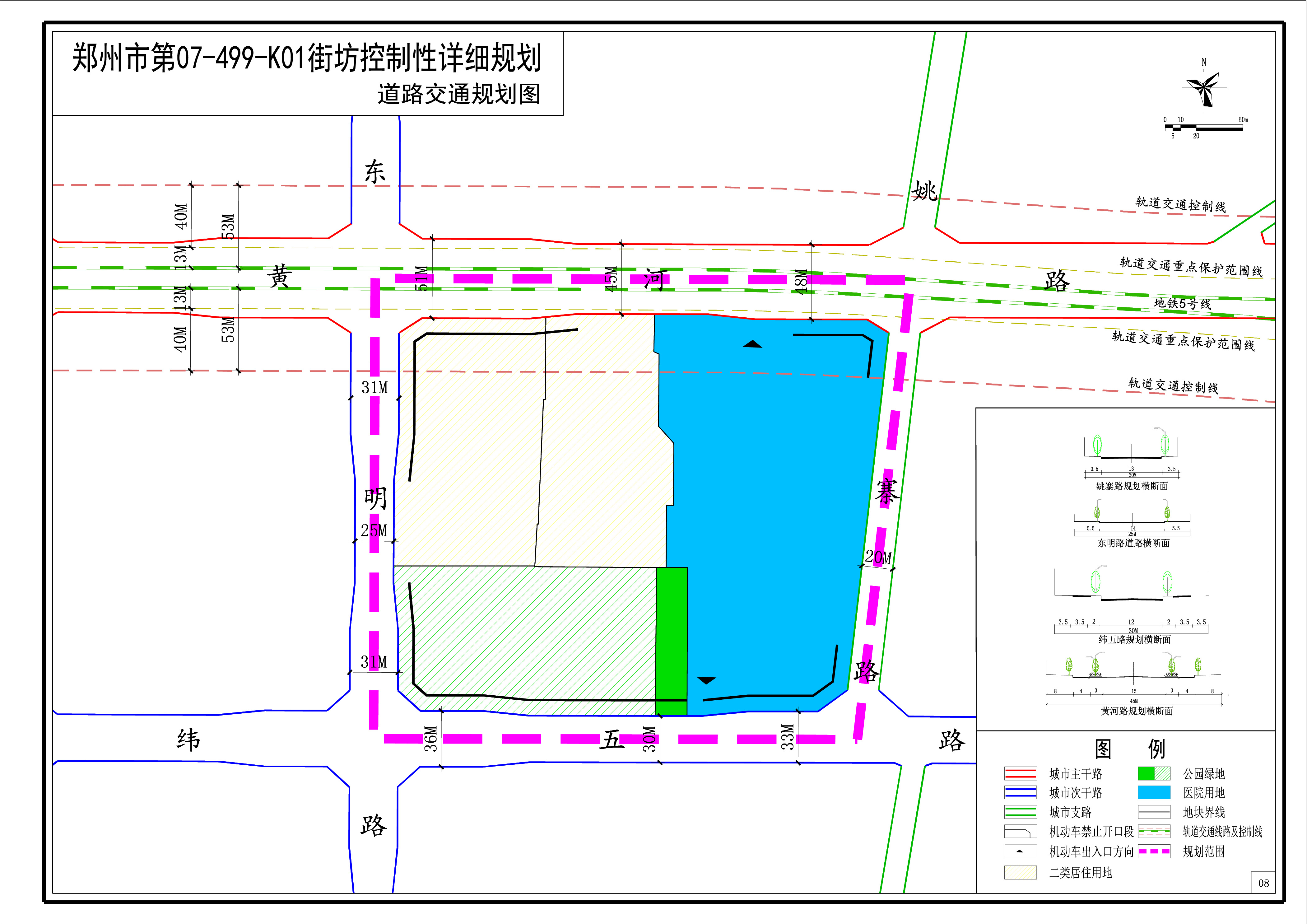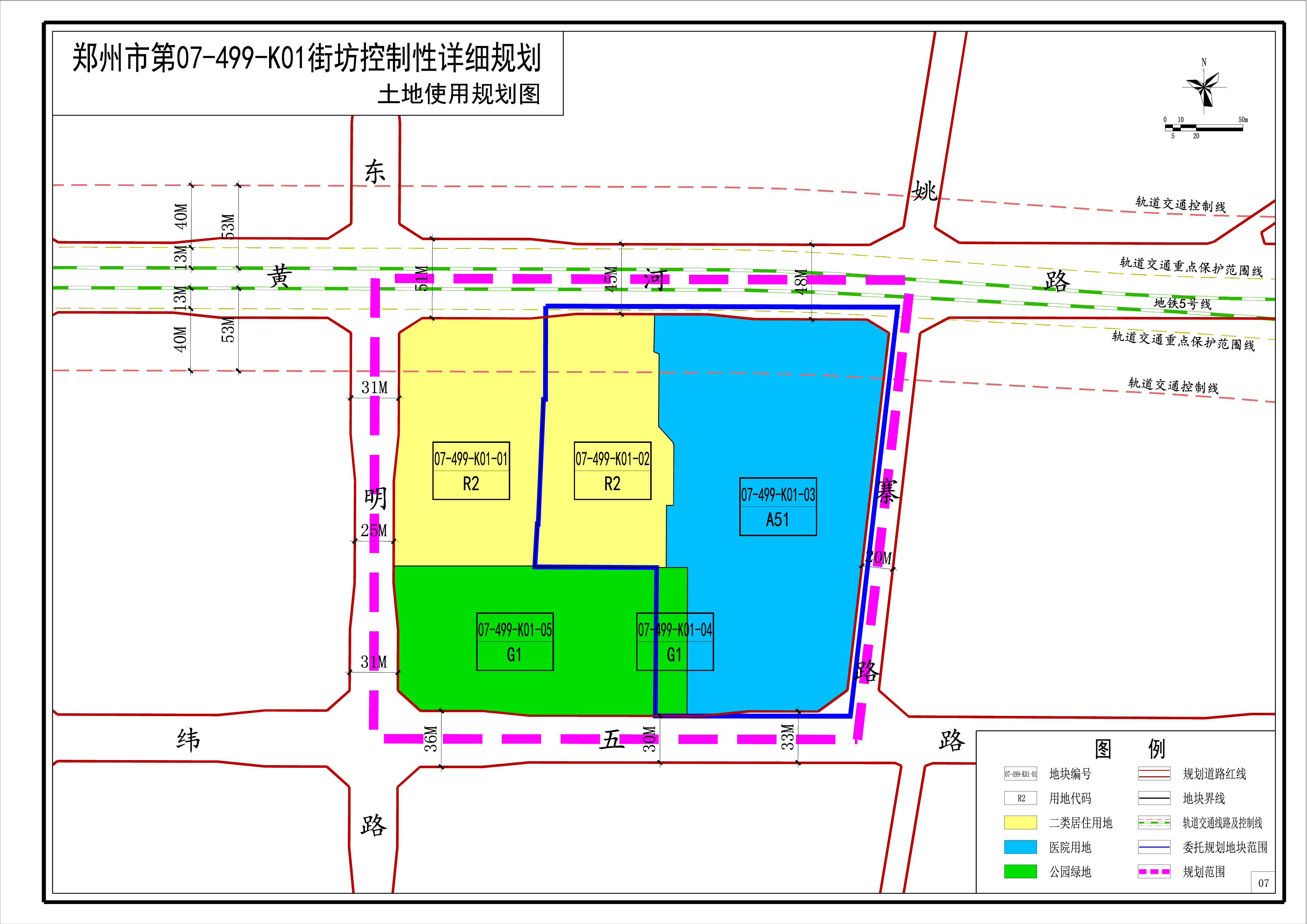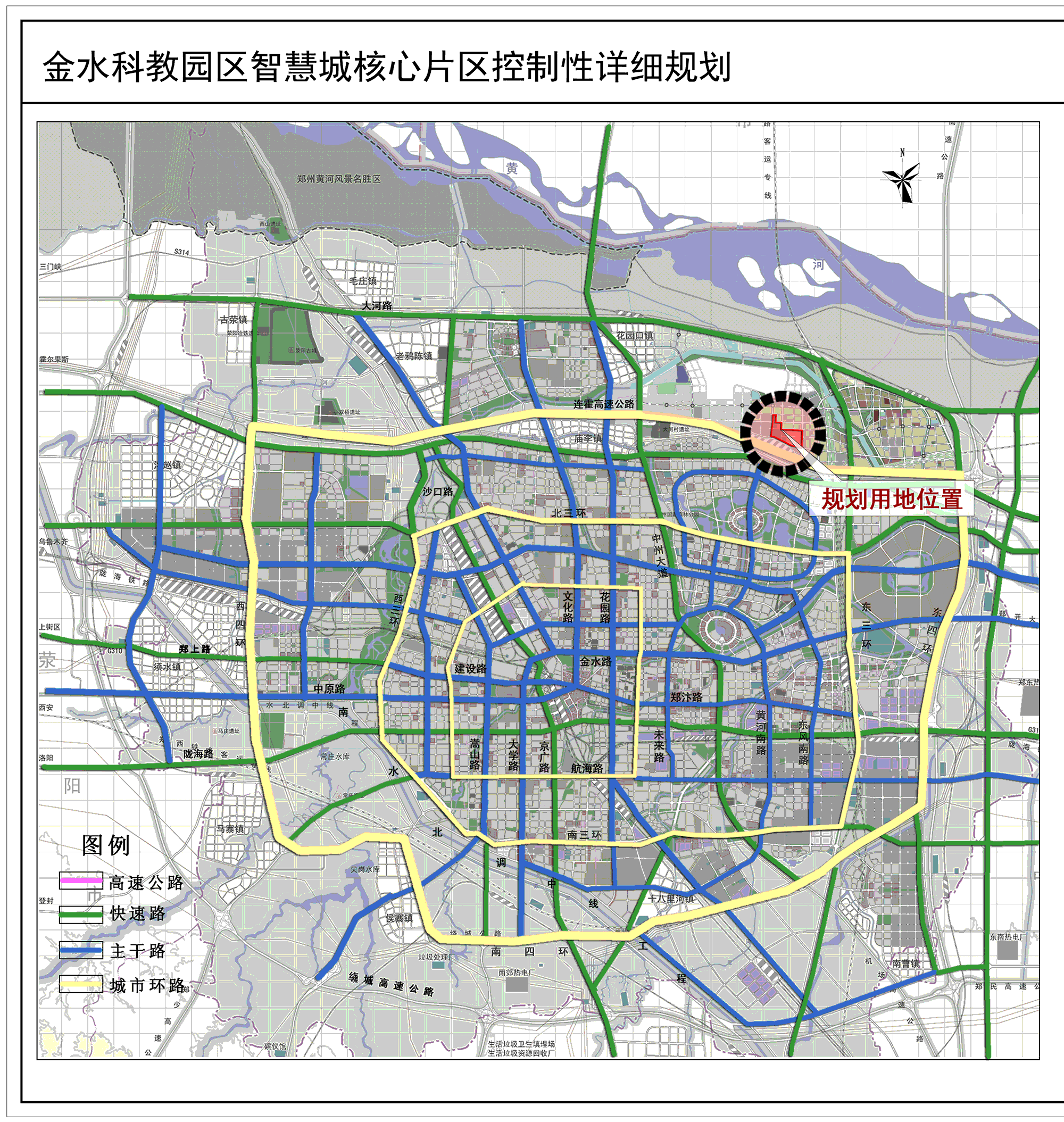 从道路交通规划图来看,规划地块北临黄河路、南临纬五路,西临东明路,东接姚寨路,地铁5号线即在项目北侧,区位优越,交通便利。