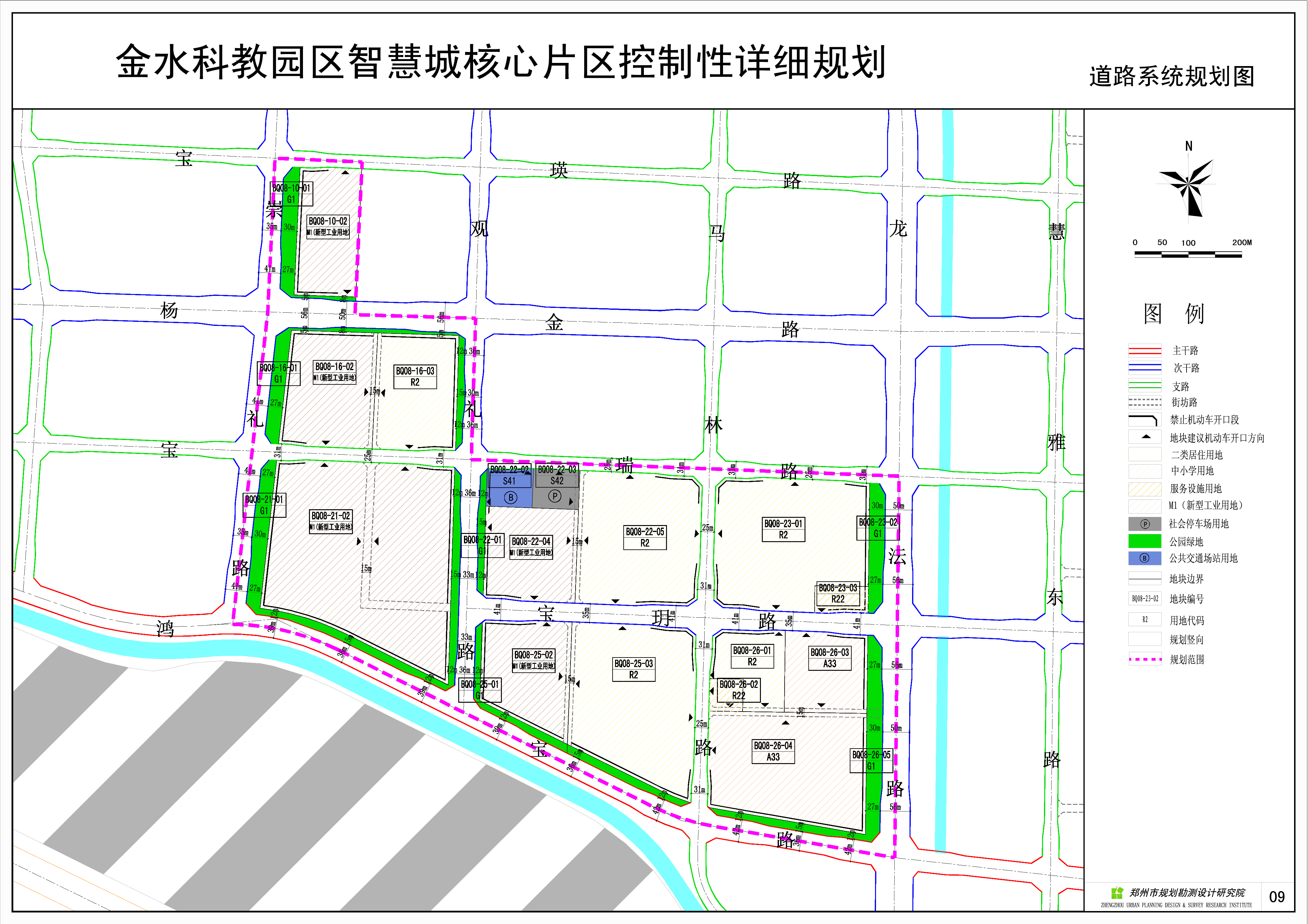 根据道路系统规划图,规划范围内设有多条道路,横向:宝瑛路、宝瑞路、杨金路、鸿宝路;纵向:崇礼路、观礼路、马林路、龙沄路,近连霍高速及东三路,距离北龙湖金融岛较近,可享受其配套。