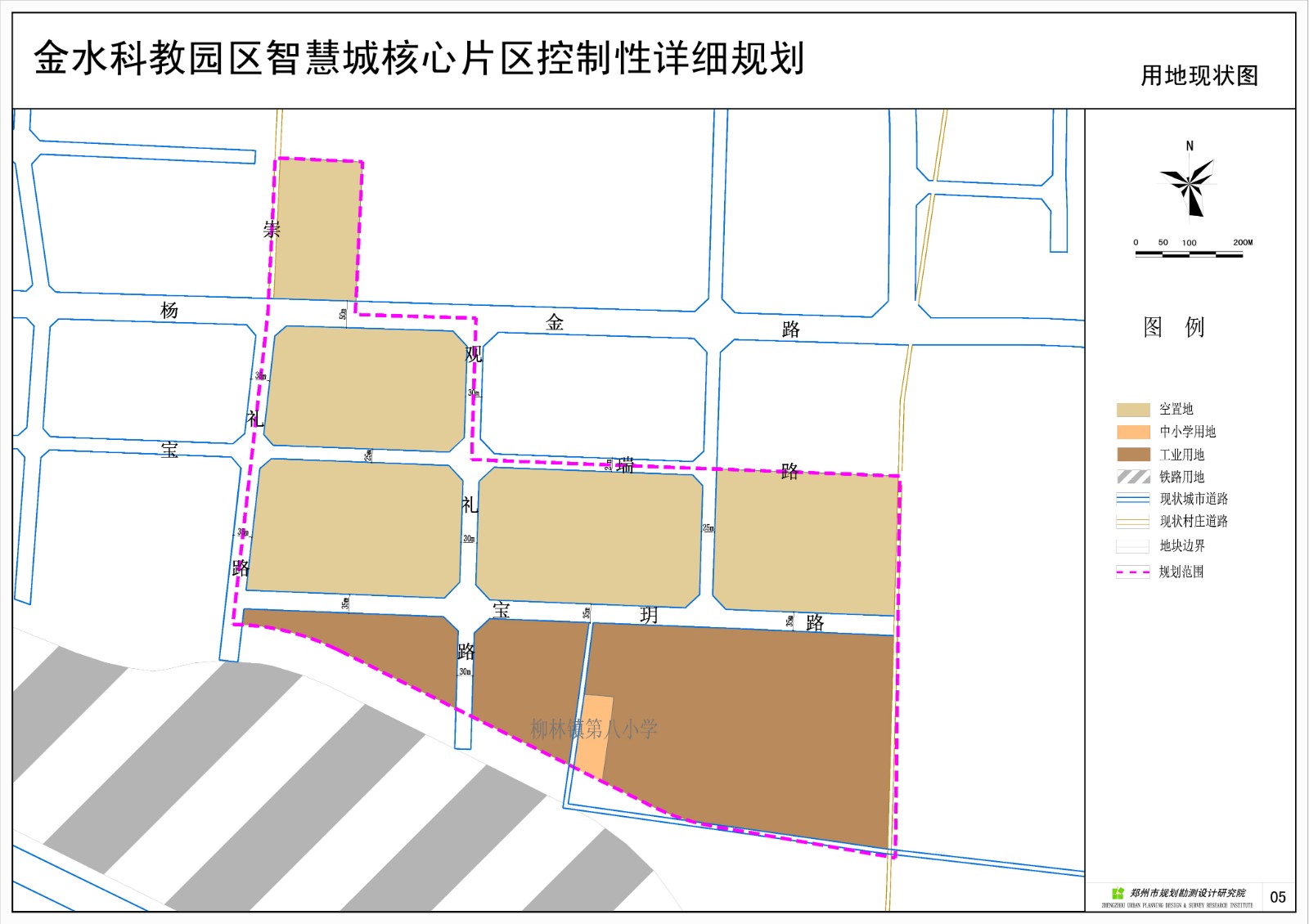 规划用地位于郑州市东北部,行政区域隶属于金水科教园区,具体为崇礼路、鸿宝路、龙沄路、宝瑞路、观礼路、杨金路和宝瑛路围合的区域,总用地面积约为81.54公顷(1223.1亩)。