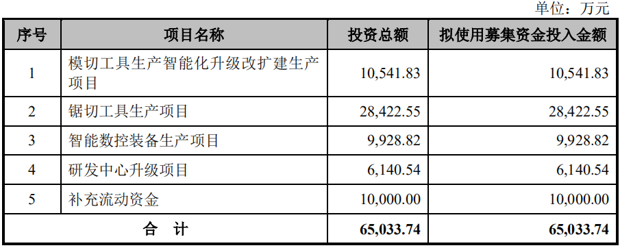 本次发行恒而达拟募集资金6.50亿元,将用于模切工具生产智能化升级改扩建生产项目、锯切工具生产项目、智能数控装备生产项目、研发中心升级项目、补充流动资金等。本次发行恒而达实际募集资金总额人民币4.91亿元,缺口部分将通过银行贷款和其他自筹资金解决。