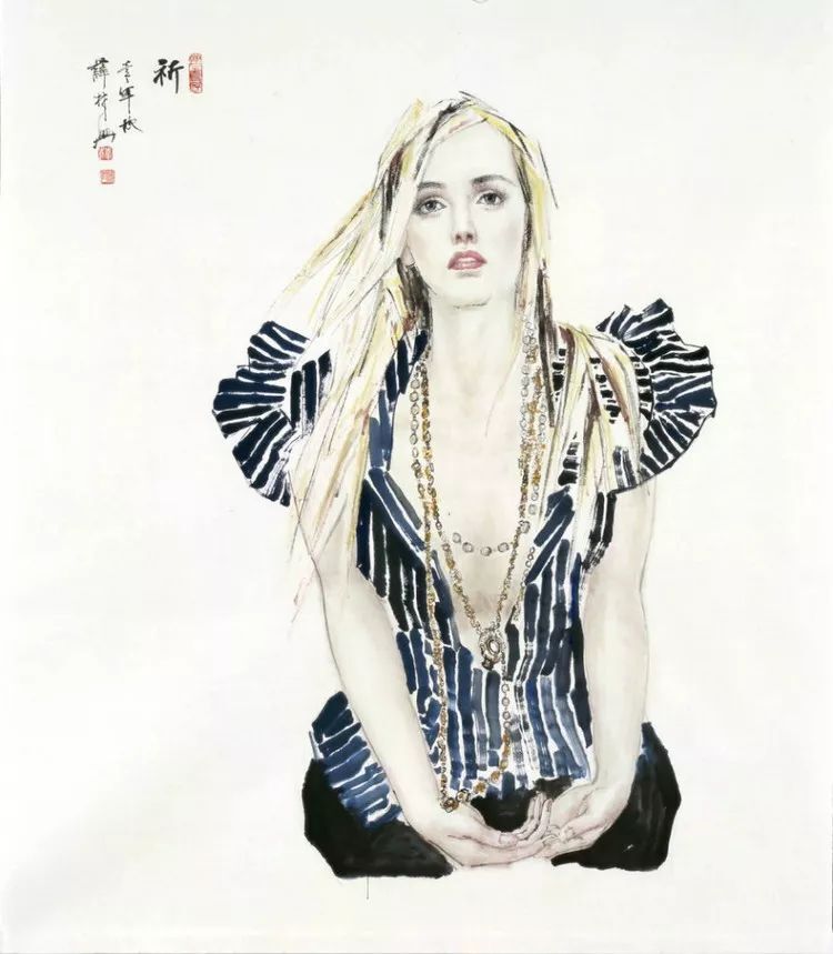中国水墨不但完全能达到西方油画光影变幻的奇妙效果,微妙起伏的肌肤质感,更胜出西方油画无法企及的神韵美、意境美、和诗意美。