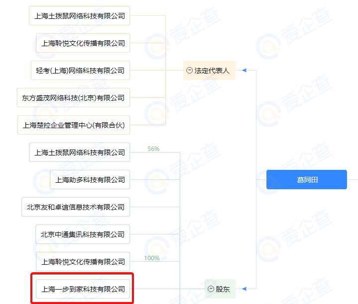 点进去一看,葛同田还是“上海一步到家科技有限公司”的股东和法定代表人。