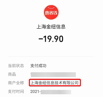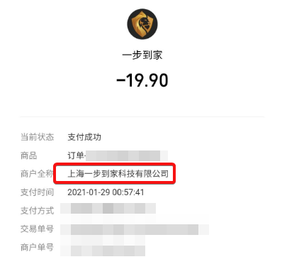 有的网友支付信息显示“上海一步到家科技有限公司”,有的则显示“上海金纽信息技术有限公司”。