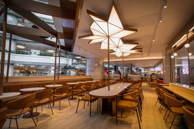 此次Tims咖啡广州天河城店的设计也同样别具匠心,整体色调是温暖的原木与Tims红相间,传统屋脊与亭台楼阁等中国古典建筑元素仿佛带人们进入一个古色古香的茶馆中,而飘溢的咖啡香,精美的枫叶大吊灯与冰纹设计又为这个空间增添了专属于加拿大的风格特色,独特的中西融合让整个空间自成一体,置身其中,Tims希望大家停下忙碌的脚步,在这里慢慢“叹”一杯咖啡,享受生活中的片刻美好。