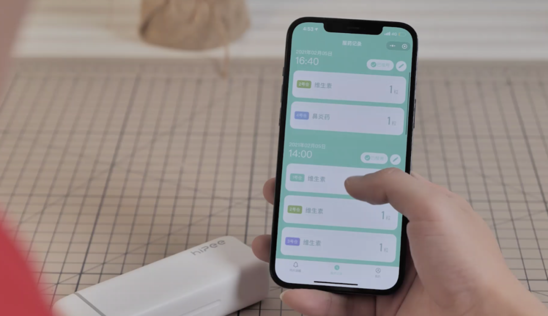 初次使用可以通过微信小程序,给每个药仓设置药品名称,哪天吃,一天吃几次,还有提醒吃药的时间。不同的药仓可以设置不同的服药时间,时间到了,相应的药仓就会亮灯,也不用担心会吃错。