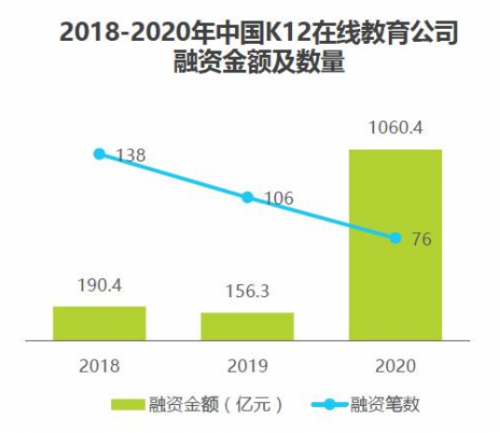 2020年,在线教育成为资本的宠儿。据统计,2020年教育行业累计融资1164亿元,其中在线教育融资金额1034亿元,占比89%。值得注意的是,在线教育融资额的80%都流向了头部的5家公司,与此同时,截至 2020年10 月底,教育相关企业的注销数量达到13.6万家,行业马太效应明显。