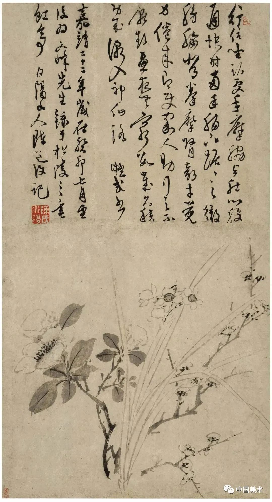 开明代水墨大写意花鸟画风气之先的陈淳、徐渭,被后人誉为“青藤白阳”。
