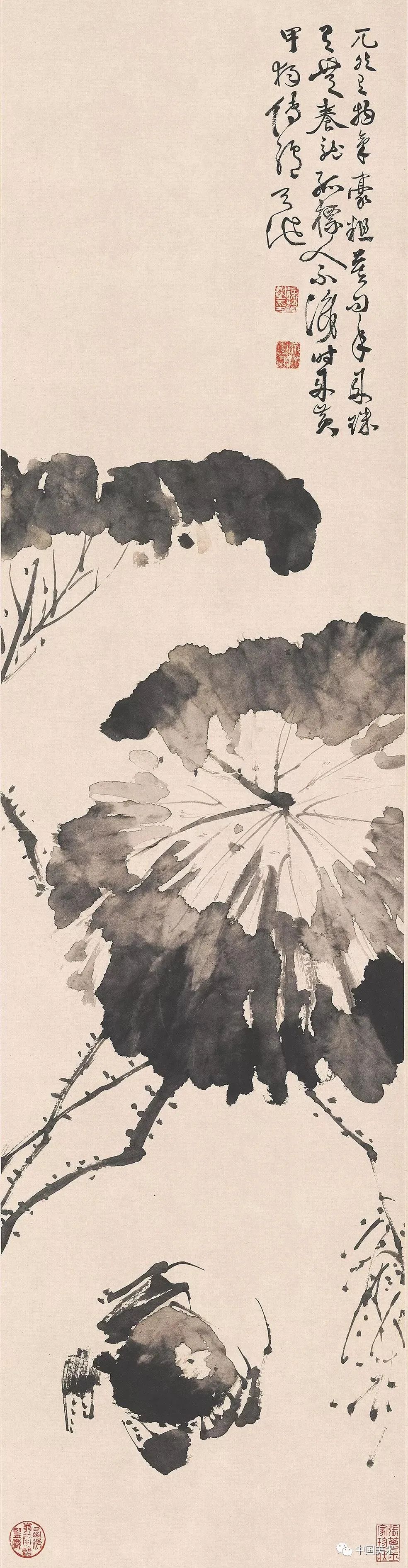 他画鱼、画竹、画蟹等,都处于一种近乎癫狂的状态,在用笔上,经常是酣畅淋漓的“涂抹”。他曾在题画诗中写道:“我昔画尺鳞,人问此何鱼?我亦不能答,张癫狂草书。”他说自己画鱼,画的只是笔情墨韵。他使文人画的理论和实践,从重“形神兼备”的主客观兼顾转向“意在象外”的重主观而次客观的大写意画发展阶段。他提倡的绘画艺术重在表现自我,表现画家的心灵,这也是文人画发展到高级阶段的标志。