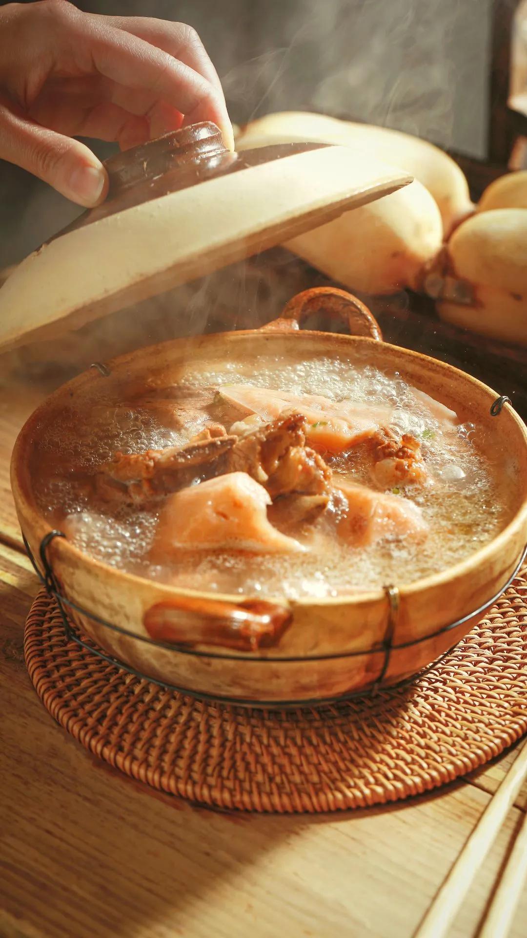 而煨汤一定要选择老式的土罐铫子,黑亮的锅里发出咕咚咕咚的声音,此时煨出来的汤微微泛红,因为长时间跟土罐铫子接触发生了化学反应。舀上一碗加入葱花、白胡椒等调料,温暖极了。冬天最幸福的事情莫过于跟家人守候在一起喝碗藕汤过年吧。