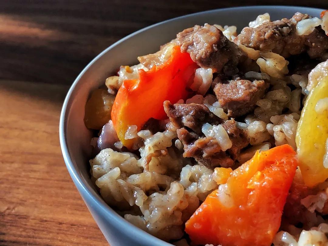 对于羊肉的膻味,新疆人也会有自己的处理方式,他们往往会选择绵羊肉,比起山羊肉更加鲜嫩细腻,而洋葱与孜然能有效掩盖气味。羊肉的汤汁裹着每一粒米饭,其间还遍布着香甜的葡萄干,亦菜亦饭,吃上第一口就被鲜美的味道吸引。