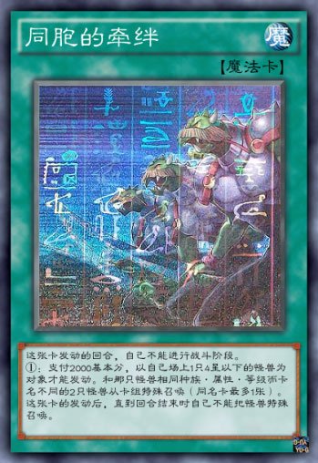 这张卡发动的回合,自己不能进行战斗阶段。 支付2000基本分,以自己场上1只4星以下的怪兽为对象才能发动。和那只怪兽相同种族·属性·等级而卡名不同的2只怪兽从卡组特殊召唤。这张卡的发动后,直到回合结束时自己不能把怪兽特殊召唤。