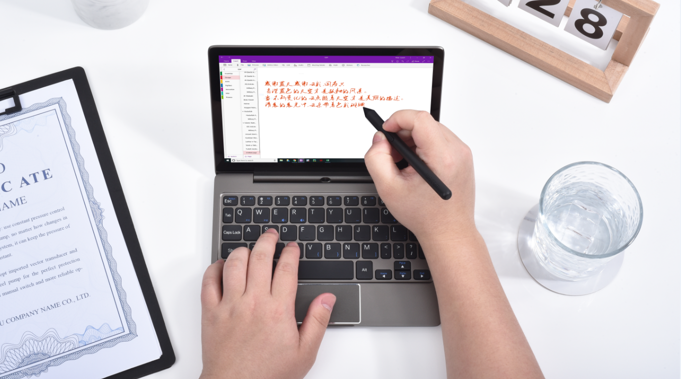GPD P2 Max还号称是全球最小的8.9寸超极本,整体外观跟笔记本电脑一模一样,像指纹电源二合一、转轴内置200万像素摄像头、全键盘设计、触摸板应有尽有,办公不用再外接其它设备很是方便。对了,它的屏幕还支持10点触控和手写笔输入,不过屏幕不能翻折,算是小小的遗憾。
