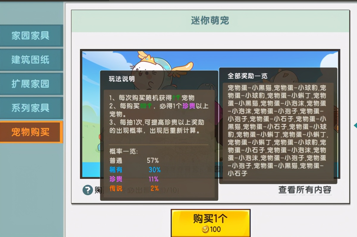 不过,由于每个宠物在探险之后会处于疲劳状态,需要休息一段时间后才能继续探险。因此,如果小伙伴们急需各类需要探险才能获得的道具,可以通过宠物商人,多获得几只宠物。这样便可以让几只宠物交替去探险了,既不会让可爱的宠物们劳累还能大大提高探险效率。值得一提的是,每购买十个宠物,会必得一只珍贵以上品种的宠物,有兴趣的小伙伴们还不抓紧冲冲冲!