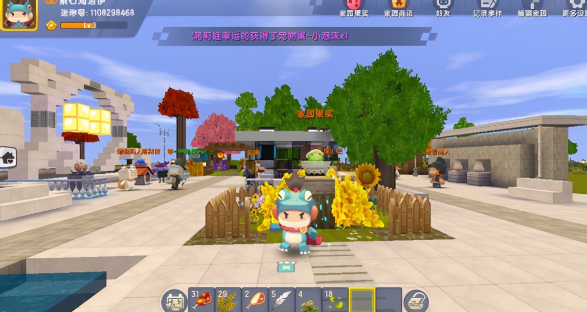 当然,除了农场和牧场,在这里还有一个比较可爱的功能——宠物。相信不少小伙伴期待宠物功能已久了吧,而在我的家园中,这个圆滚滚的小家伙如期而至。它的到来,不仅能让玩家心情值+1+1,还能让其去探险,为小伙伴们带回许多用家园币买不到的东西呢,如胡萝卜种子、甘蔗种子等。