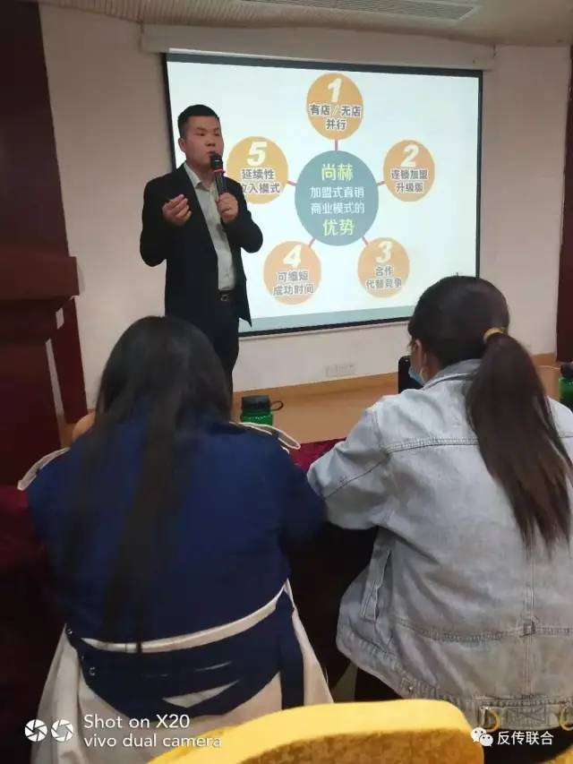 下午讲他们强大的露雨系统,他们的这套系统是他们的模式创始人徐超创立的,是他们尚赫独有的,这套模式说白了也就是加盟交钱,然后才可以拉别人加入。据我们从商务部信息系统网站上查询他们的企业信息,虽然尚赫拿到了直销牌照,但是直销范围只有十个省市,安徽是不在直销范围内的,我国直销法上面明文规定,在直销范围外从事直销活动,均为不合法。