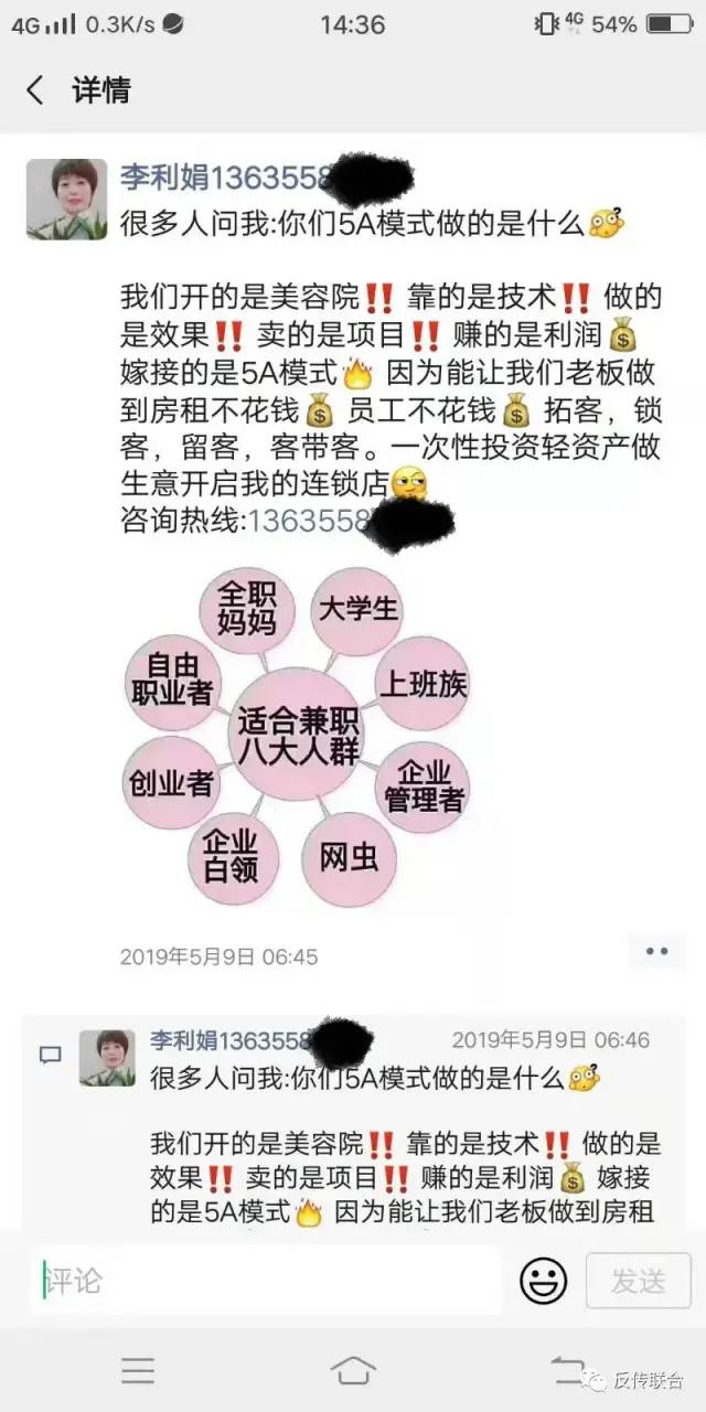 在房间里任治超问我怎么看,想不想赚钱,做这个很简单相信就好了,无需雇美容师,无需付房租,无需支付高额费用,高利润,就可以有一家豪华的美容店,利润共享,甚至利润都归自己。