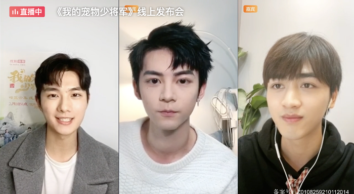 《我的宠物少将军》的演员主创也被称为“宠物天团”,颜值爆表,青春养眼。此次上线连麦分组进行,两两搭档分享拍摄花絮,由“神秘少女”卿子悠的扮演者徐沁、可爱念夏的扮演者刘帅;“皇家雕刻师”苏子墨的扮演者莫非万里、”平平凡凡打工人”小书童青云的扮演者刘逢乔;”史上最强助攻侍卫”洛风的扮演者张冠森和“喵记烤鱼店老板布偶”的扮演者刘贾玺;不想讲义气一心求爱情的二少爷莫羽寂扮演者孙熹之、南屏晚公主王熙然;以及备受关注的“薄荷糖CP”帅气玉狸星王子莫修染的扮演者肖凯中和宠物店老板娘苏小荷的扮演者田曦薇。