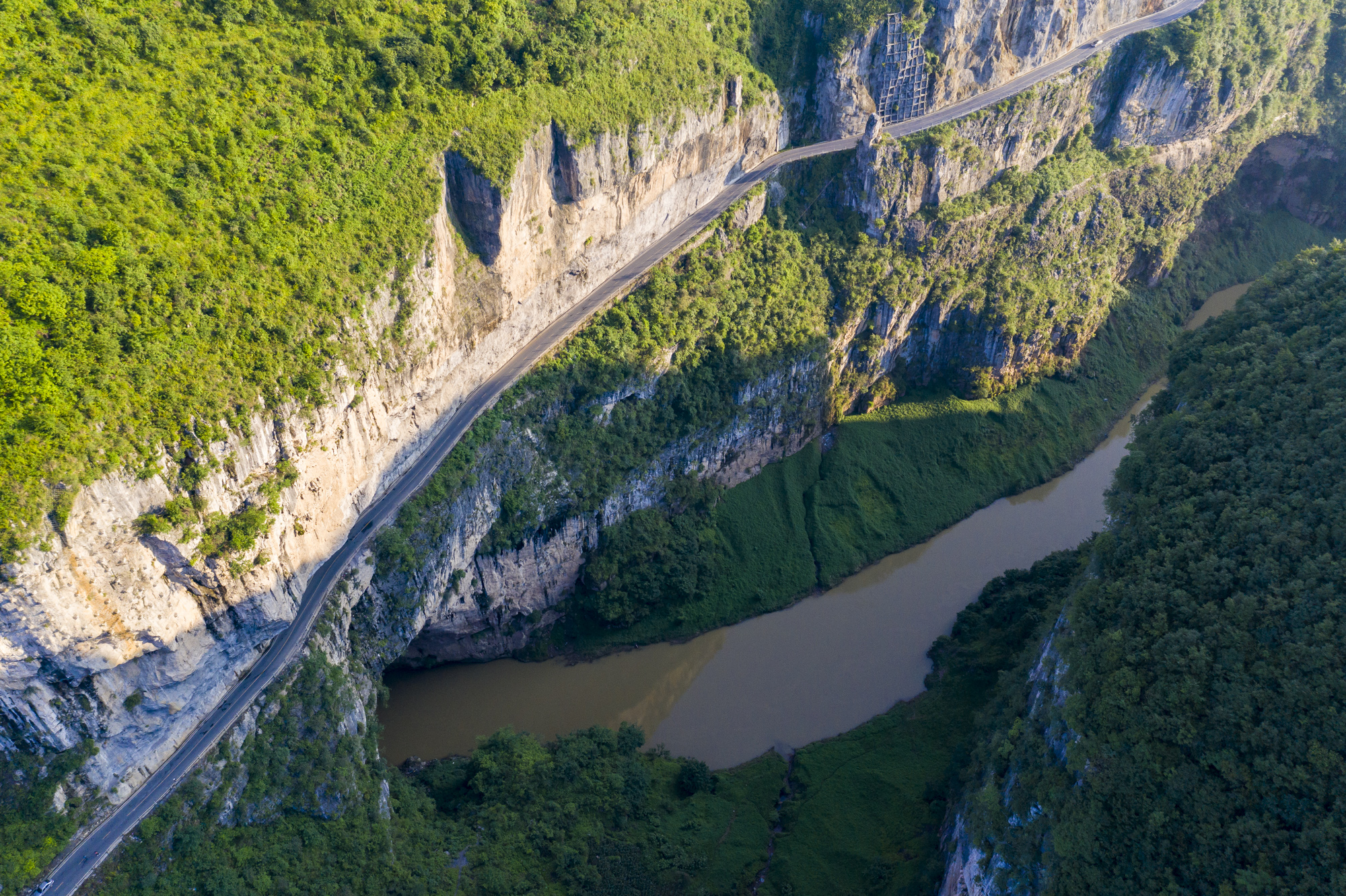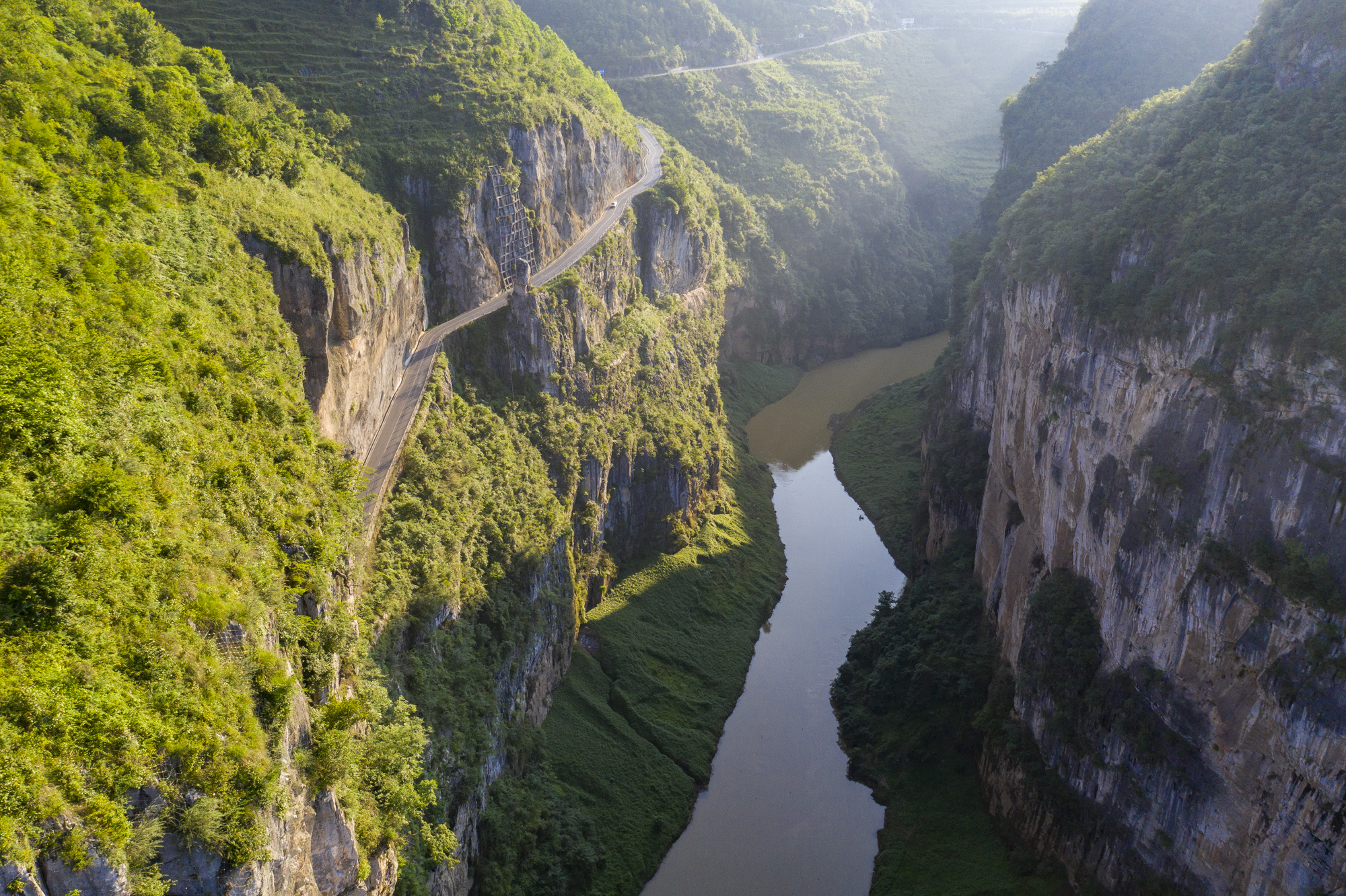 毕节市壁挂公路。毕节市赫章县有一条壁挂公路,悬挂在将近90度的悬崖上。道路距离山下有200米的高度,又高又陡。贴着山崖开车,旁边就是悬崖,惊险程度可想而知,就问你敢走吗?