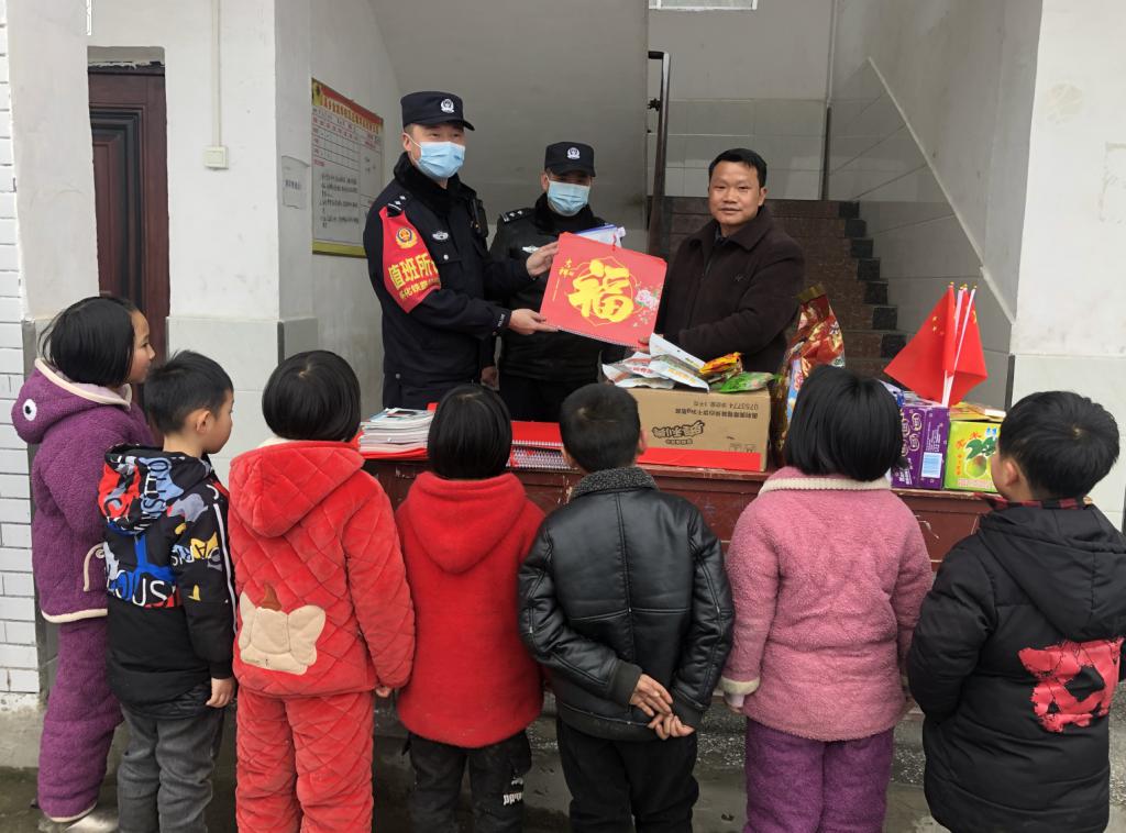 原标题:留守儿童的父母不能回家过年,这位铁警带上礼物走进湘西深山