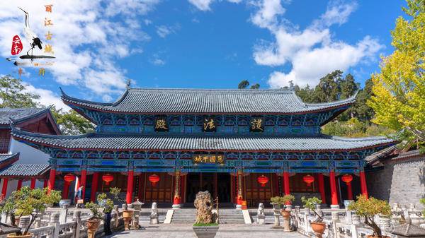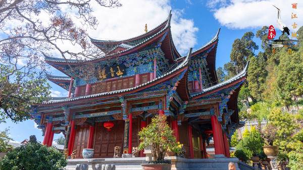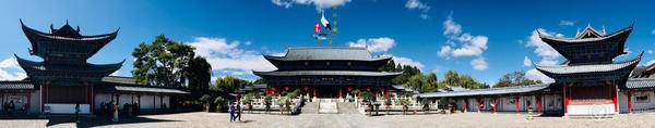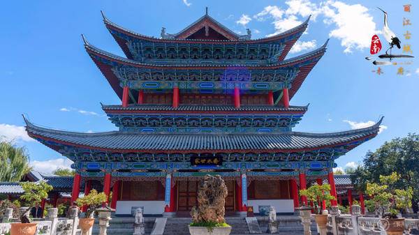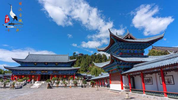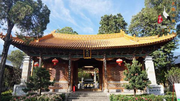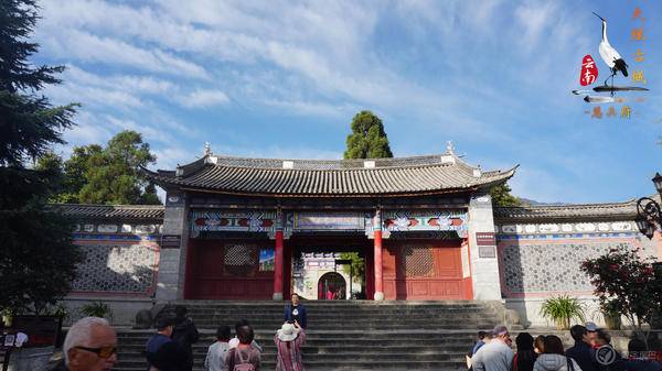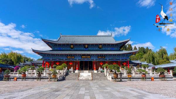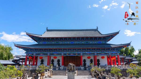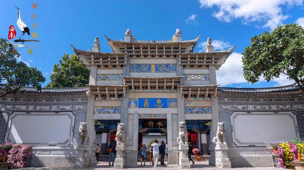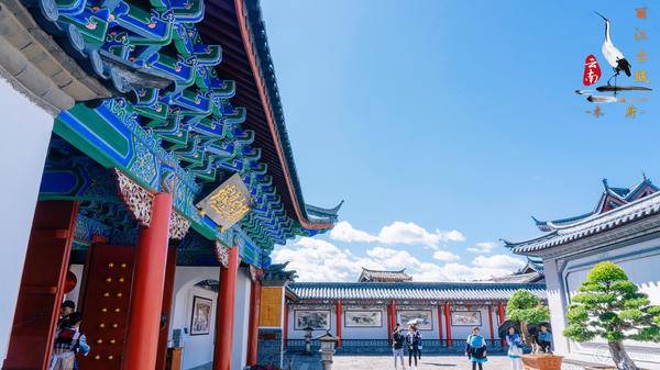 穿过忠义巷,行至玉带桥,到达木府。木府坐西朝东,浴朝阳而勃发,格局仿照'紫禁城'而建,布局严谨,规制峻整。其宏伟的建筑、辉煌的宫殿、精致的雕刻、玲珑的构件、璀璨的绘画,充分体现了明代建筑的风采气质。所以当地流传着'不到木府,等于不到丽江'。