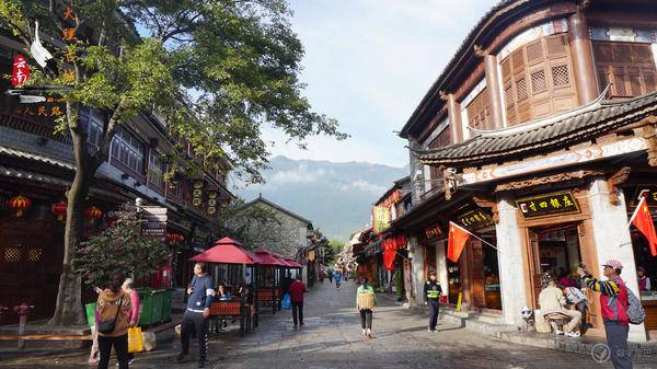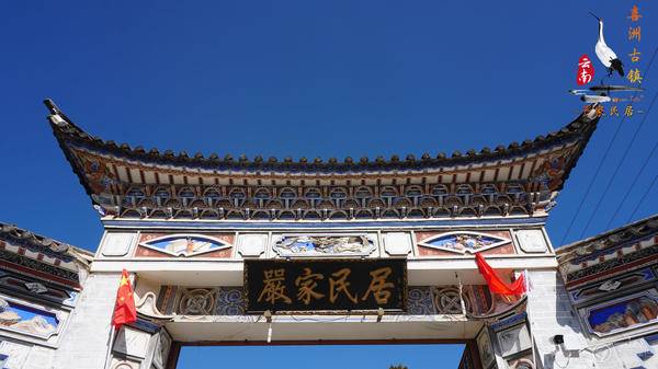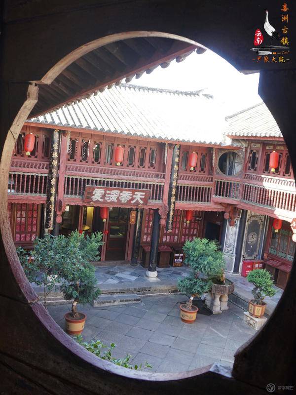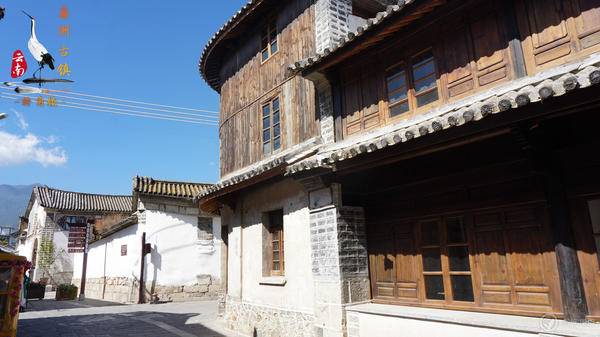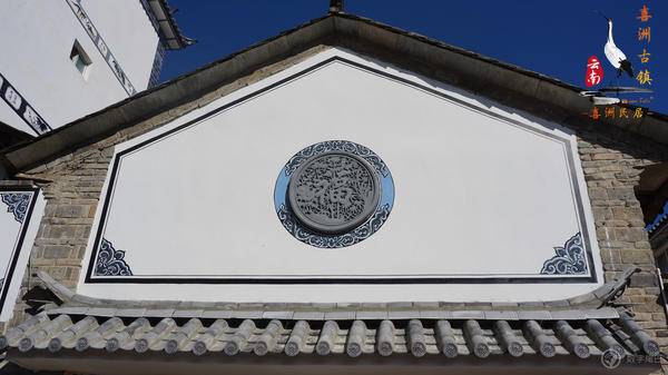 车停服务中心,步行进入喜洲。村镇之中车流穿行,行人攒动,转入步行街反而略显冷清,'翰林牌坊'只有零星几人,'严家大院'门口才遇到几队参观的游客。购票走进严家大院,满目是白族民居风格建筑,门口翘角飞檐繁杂彩绘;'三坊一照壁'与'四合五天井'两种院落相映成辉,六方硬山顶木质楼房错落有致,寓意'六合同春';院落中的照壁,造型简洁,泥塑纹饰点缀周围,中部白底留空,中间一个大大的'福'字;'一进四重院'四通八达,曲径通幽处又是'四合五天井'的院落,结构环环相扣;堂前大理石雕刻,飞禽走兽,花鸟鱼虫,祥瑞动植,神话传说,惟妙惟俏栩栩如生;木质楼房用料考究,各处木雕雕凿技艺精湛,门窗雕花,吊柱、吊枋、挂枋、照面枋等造型古朴精美,甚少雷同;后院悄然伫立着一栋西式风格的别墅洋房,现代建筑风格与周遭的典雅民居反差强烈却又和谐融入。