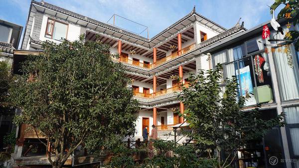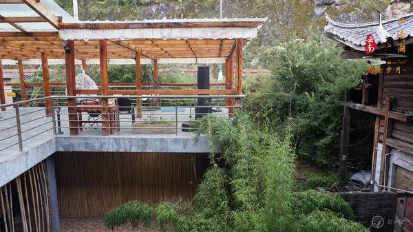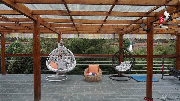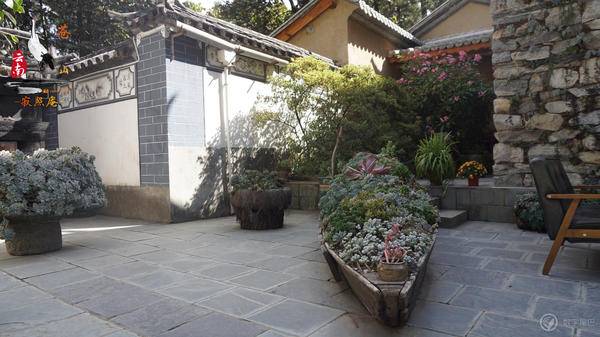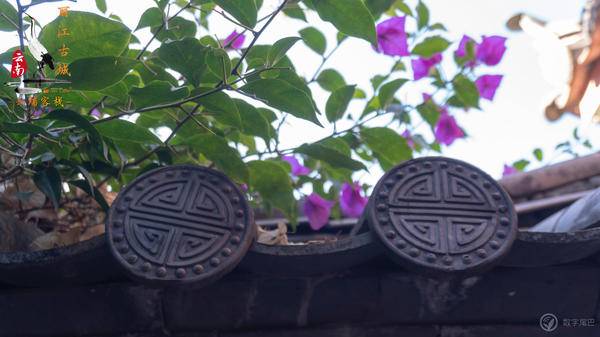 又至南门桥,折返客栈,才沉下心来细细品味'云端客栈'的闲趣。纳西族井干式木楞房建筑风格,两层木结构楼房,三坊一照壁;外墙'云端'艺术造型石板镶嵌,门头木饰雕梁错落层叠;穿过外廊,步入天井,庭院石板铺路,花草绿植随处可见,溪流景观潺潺相伴;茶台遮阳伞古朴现代交错,照壁石料修饰外拙内秀;三坊朱红木柱排列有序,木质门窗楼梯家私遍布,白墙红毯平淡简约,纳西风格装饰画饰品点缀适度;灰瓦屋顶古朴含蓄,檐头兽雕优雅精致,瓦当纹饰自然流畅;天台也精心修饰,露天凉棚温馨雅致,放眼望去,蓝天流云淡月映衬层层灰瓦,翠竹摇曳三角梅秀美,独有一番情趣。