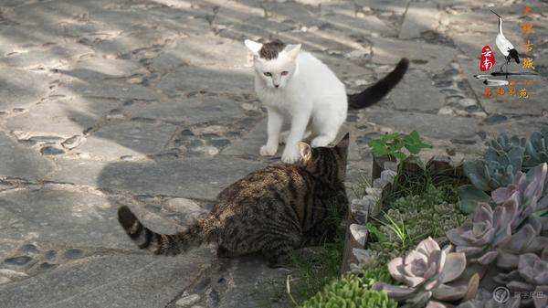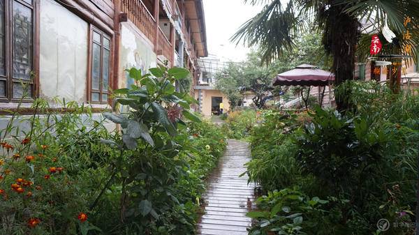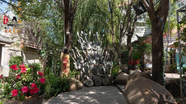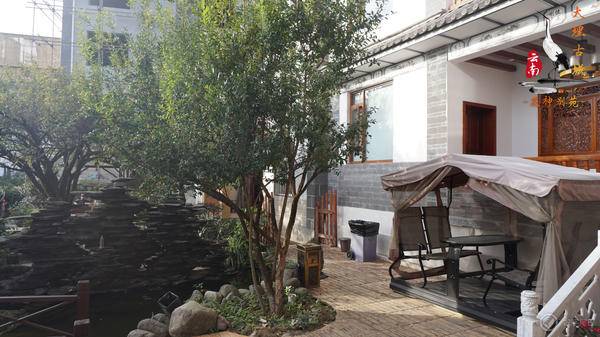 在大理最熟悉的就是这份闲逸,伴着牵强的日出醒来,虽是云南行程的最后一日,没有匆匆奔去景区,而是赖在客栈里发呆,才有机会细细体会'花神别苑'的清静。隐匿在一塔街的村落中,寻常的白族现代风格建筑,外墙粉刷并无新奇,门口飞檐翘角红柱琉璃,穿过门廊豁然开朗别具洞天,三层砖木结构小楼,青砖乌瓦白墙木色和谐共生,根根红柱坚实挺立,木质围栏廊顶地板楼梯搭配精美门窗雕花;配楼是简约的二层轻钢小楼,楼下厨房餐厅,楼上前台接待室;院中绿树成荫,繁花簇拥,凉亭摇椅,拱桥水景,每个角落都温馨自然。客栈里最闲逸的却是两只'喵星人',小花与小灰,据说是前台妹妹的儿子和干儿子,所以极度受宠,餐厅里寻食,沙发上打盹,廊庭下散步,花园边嬉戏,草丛间追逐。每个人的目光都围绕着这两个快乐精灵,眼中泛着羡慕的光彩,心情也分在愉悦,美好的一天已拉开序幕。