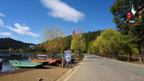 幽静的小渔坝苍松翠柏相护,湖水湛蓝清澈小船轻轻飘荡,渔民抛撒渔网静静等待鱼获;隐秘的红崖子,繁茂山林中环湖路曲折蜿蜒忽隐忽现。抬眼望去山下里根村景色尽收眼底,远处格姆女神山流云相伴俊秀妩媚;