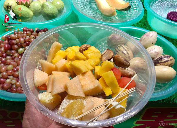 鲜切水果就显得平淡之极,甜橙蜜瓜,芒果蜜饯,搭配几颗蛇皮果,酸脆甜腻之余,总感觉缺少呼应,也许被潮汕的酸梅粉圈粉吧,就怕这种对比。