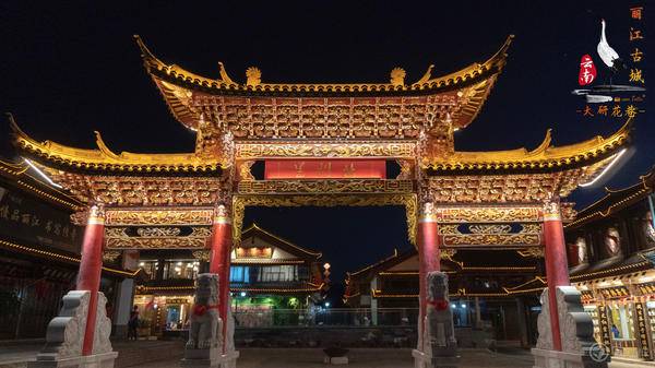 夜幕初上,大研花巷观景台异彩纷呈。天边落日余晖未尽,红霞点缀流云相伴;狮子山林木明灯环绕,万古楼夜色中独秀;大研花巷流光璀璨,花巷牌坊安静守望…