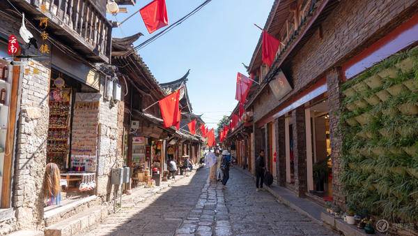 明暗交错恍然如梦,人流穿梭杂乱叫卖,拉扯着回到现实,脚下起伏的石板路,两侧林立的店铺,偶尔乍现的景致,牵引着一路向前。