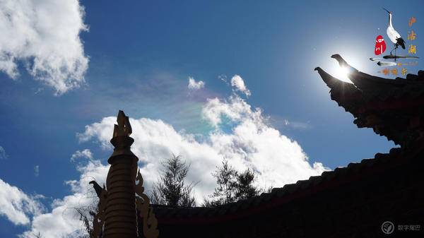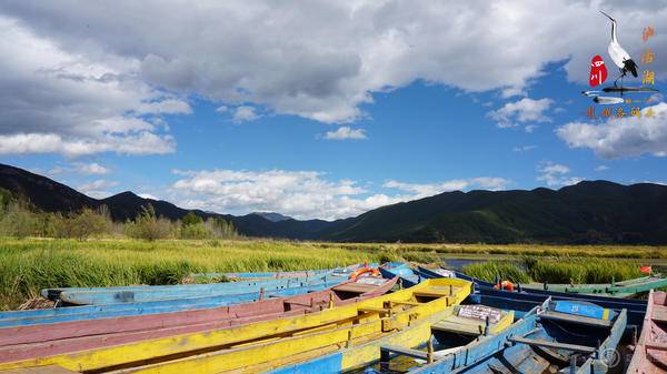 路边的'直玛次尔亭',朱红色柱身,灰瓦飞檐雨挡,彩色民族纹饰,醒目题字牌坊,静静地驻立在草海岸边,只有云朵明白他的孤独;洛洼码头烈日当头,阳光炙热干烈,天空蕴蓝耀眼,成排的猪槽船随波漂浮,听船夫们谈笑欢声。