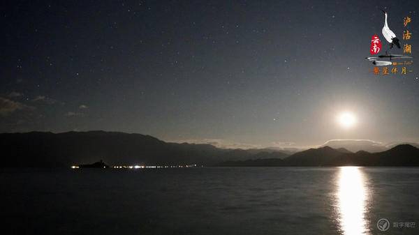 凌晨前回到房间,下意识的推开阳台门,被眼前的画面惊呆,原本漆黑的夜空,繁星璀璨,湖水对岸明月初升,金灿灿的月光洒满湖面,冲入眼帘。兴冲冲的架起相机,妄想记录此时美景,却发现无论如何都没有入眼真切。