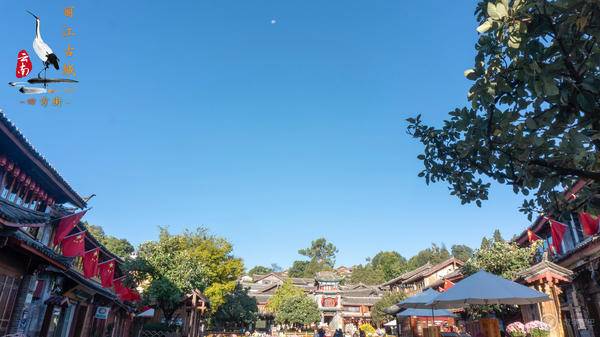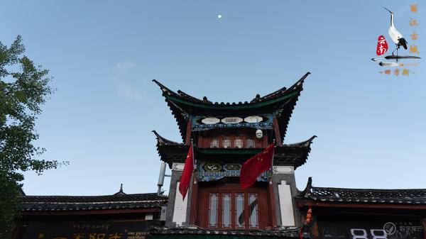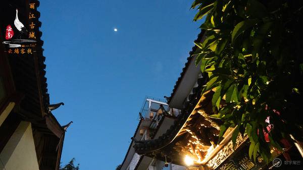 夜色挣脱不了梦的束缚,黎明又在皎洁的月光下迷失,匆匆起床,顶着弯月再次进入古城。沿着文化巷转入五一街,再到四方街,一路爬坡兜兜转转,终于在天边泛白之际赶到文昌宫观景台。