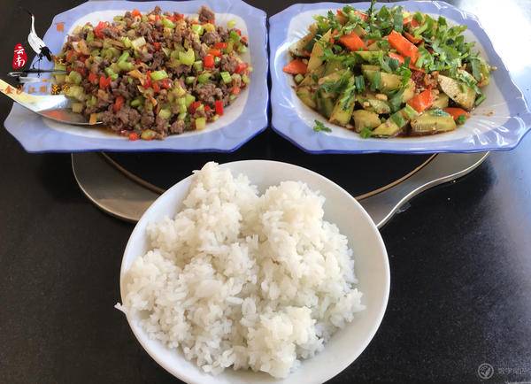 观景台大饱眼福后,回到厅堂享用午餐,老板娘推荐的芹菜牛肉,脱离北方人的认知,按照川菜风格演绎,牛肉粒鲜嫩,芹菜段脆爽,裹夹着辣椒火爆的冲击,可口下饭;特意搭配的拌黄瓜却有些埋没,酸爽不足劲辣有余,不过旅途中能有如此一餐,不负美景,不负期待!