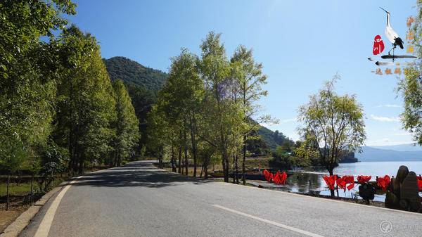 越过省界进入四川盐源境内美景延续,转过达祖码头沿路各色客栈餐馆依山傍水扎堆成片,阳光洒在湖面上波光闪现,湖边格桑花热情奔放随着浅浅波浪舞动,怡人秋风抚慰着忙乱的目光,驻立在湖边任美景冲击,里拜情人滩绿树成林,蓝天流云青山翠柏,倒映在湖水中编织出一幅秀丽画卷。水性杨花光芒闪动神秘不减,不知名水鸟自由洒脱湖面上生气陡升;
