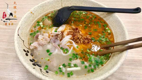 余下的路程流连与蒋公祠,玉洱园,基督教礼拜堂,天主教堂,有时又跳出攻略,在大理电影院驻足,在大理一中体育场停留,因为簇拥的三角梅兴奋,因为可爱的墙画沉默,直到正午路过玉洱路被飘香的食肆吸引,才选择性的走进'蒙自源过桥米线'。