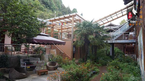 梦里云雾翻滚,醒来细雨纷飞,原本明朗的湖光山色,陷在雨雾中缥缈虚无,无奈放弃里格半岛和蒗放的行程,安心在客栈调整。细细走过客栈的各个角落,传统的三层摩梭族木楞房建筑,正门入口飞檐灰瓦古朴庄正,民族纹饰鲜花祥云灵兽色彩靓丽夺目;一层大堂餐厅活动室错落相连,搭配简约的木质家私和装饰画;后院绿植花草或争香斗艳或羞涩含蓄,隐匿在花草中的陶瓷小兽别具情趣,簇生的竹林懒散的多肉雨雾中悠闲自在;躺椅茶台椅榻在遮阳伞下安静休憩,大露台摇椅健身器材混搭有序,老旧的木屋躲在角落心事重重……