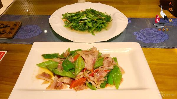 也许对于我来说,选择困难症只是借口,再次走进'妙香阁',只是对其还有一些期待。夜里二十一点食客稀少,'白族腊肉炒青椒'搭配'蒜蓉水性杨花',却显得温暖及时。一路走来经历过安龙县'爱饭'的'蒜苗炒腊肉';泸沽湖'糊涂岁月'的'摩梭小炒肉'以及泸沽湖镇的'青椒炒猪膘肉',眼前的'白族腊肉炒青椒'似乎略显平淡,既没有湘菜腊肉的层次口感,也没有摩梭小炒肉的冲击味道,反而和摩梭猪膘肉有些相似,粉嫩的肉质间隐藏着岁月的脚步,越拉近越显得深不可测;水性杨花让人捉摸不透,蒜茸爆香,与其本身的粘液一起萦绕在茎叶之上,清脆不足弹韧有余,口味并没有想象的怪异,所以存留在味觉中的记忆显得并不清晰。