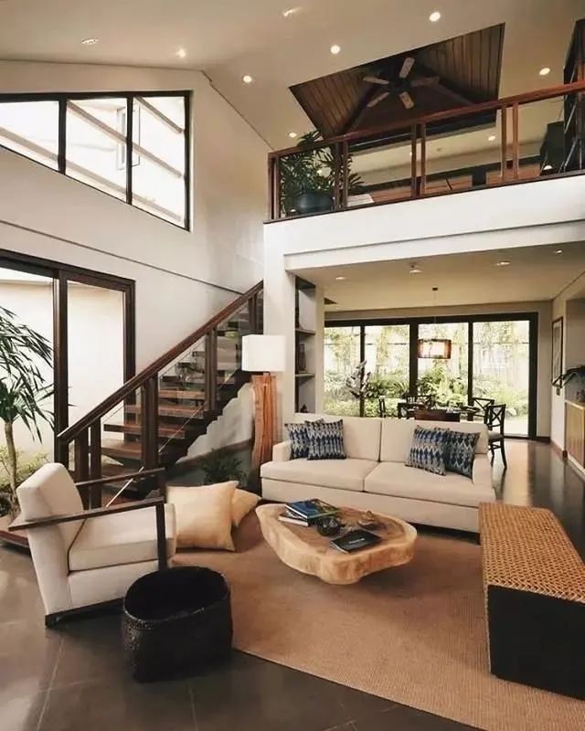 木色的楼梯间,显得非常复古,上下分层,动静分开,喜欢这种自由自在,追求奔放空间的年轻人们自然不会错过。