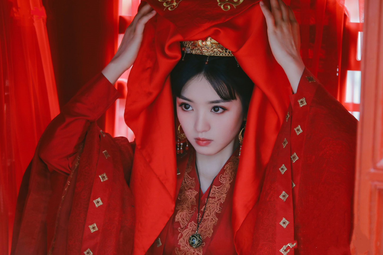除此之外,剧中还有苏小荷身穿嫁衣的造型,就算是浓妆艳抹也丝毫没有削弱她的美,穿着嫁衣端坐着,平添了几分贵气,真可谓是浓妆淡抹总相宜啊!