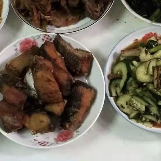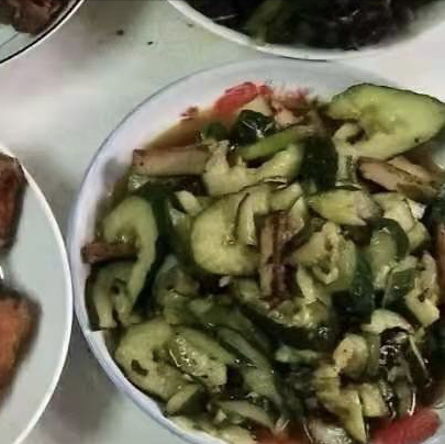 到了除夕下午,为了不耽误吃年夜饭,自己提前就开始准备年夜饭了,因为是第一次做年夜饭,就先从最容易一道菜开始做起,第一道菜:凉拌黄瓜,这道菜流程比较简单,主要食材:两根黄瓜+香干,自己先把黄瓜拍碎,然后切成块,放入盆中,然后把少许卤味香干切好,放入盆中,再放入放入少许葱丝和青椒,最后放入调味料,为了让这道菜更加美味,自己最后特意使用了特制香油(老家自己压榨的香油),经过均匀搅拌后,这道菜就装盘了,自己品尝了一下,味道还可以。