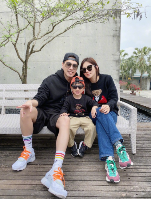 2月13日,Ella陈嘉桦在社交账号晒出大年初二亲子日一家三口合影。