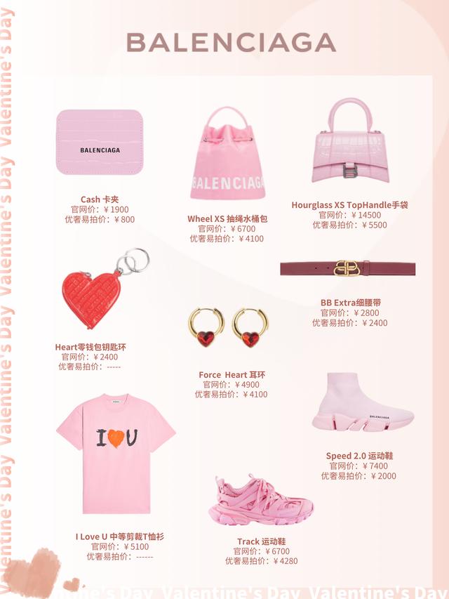 巴黎世家的情人节特定款都是粉粉的,大大地满足了小仙女们的少女心,有没有觉得屏幕前都是粉红色的小泡泡呢~ 爱心样式的钥匙包和耳环也太适合情人节了吧