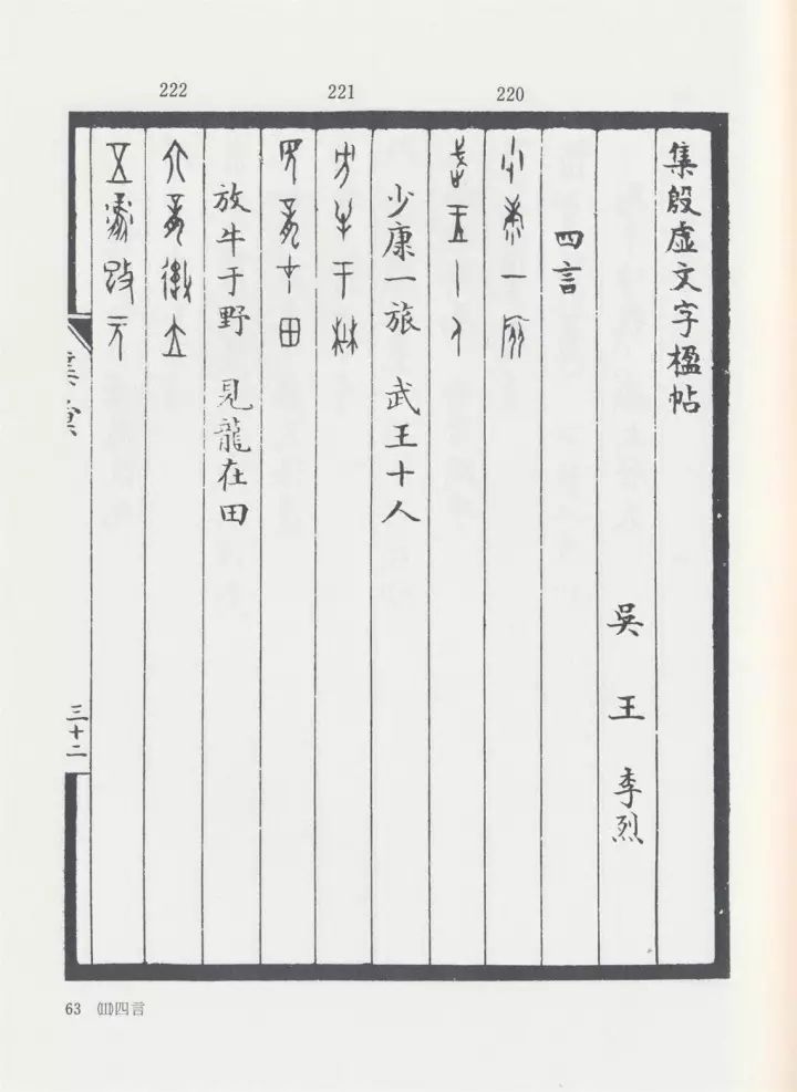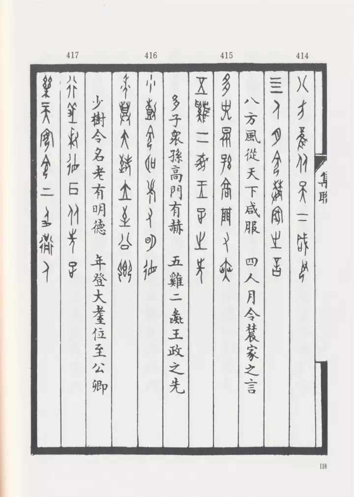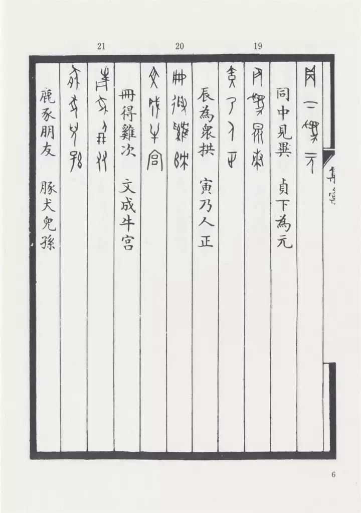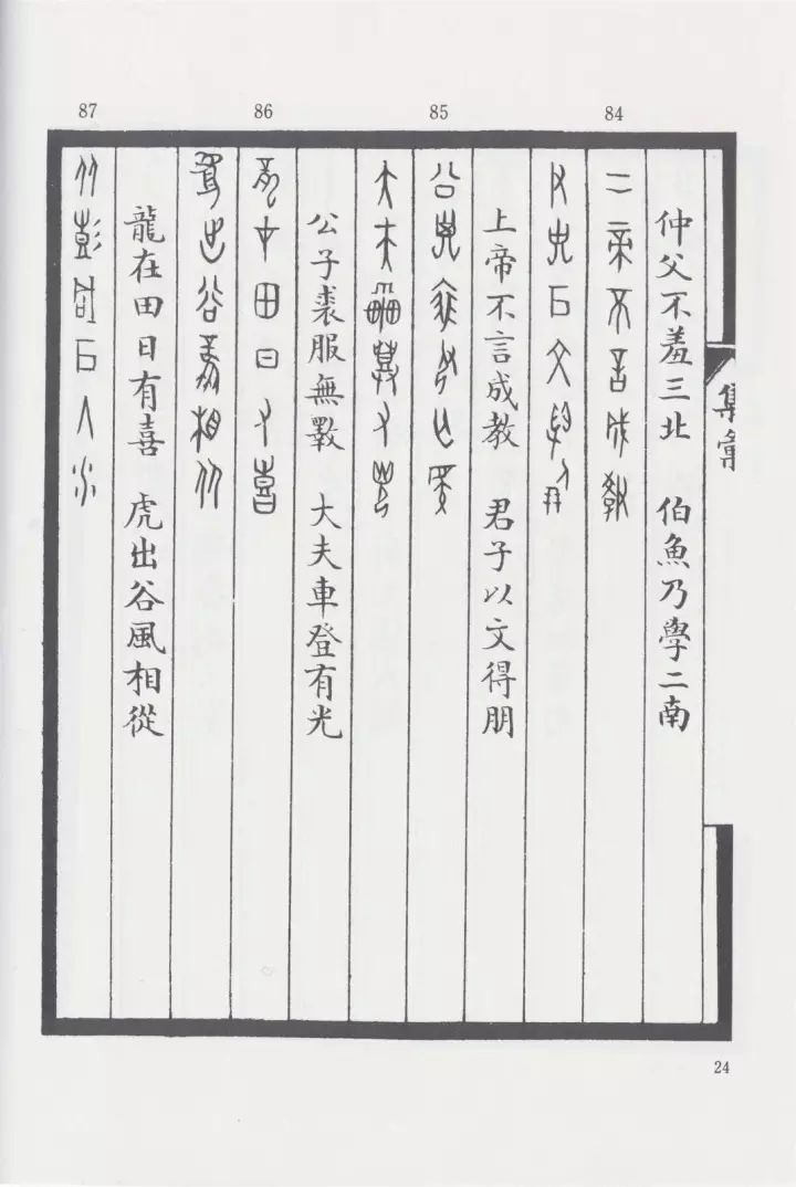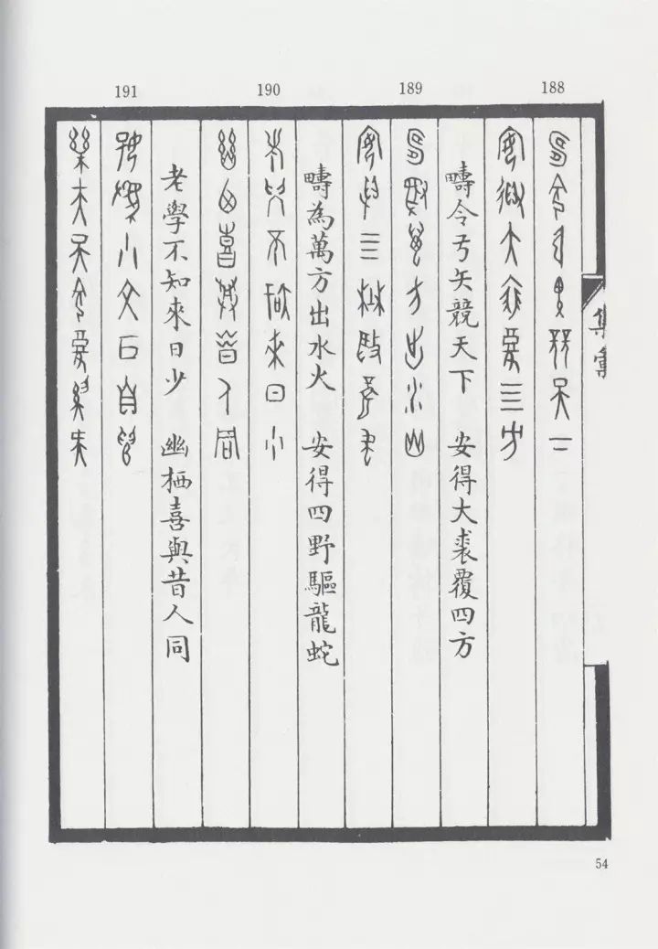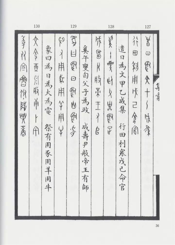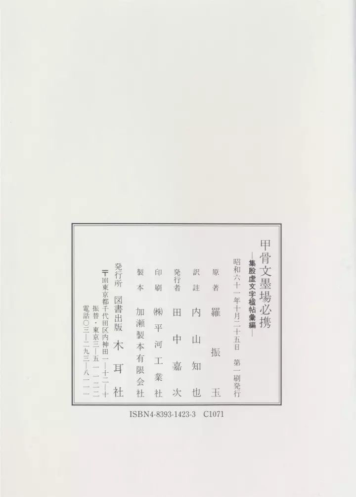 本篇虽名为《殷墟甲骨文楹帖汇编》,但由于《甲骨文墨场必携》本所收各家集联字迹更为清晰,故选用该本图版整本扫描,这里略去了书中日文注释,主要提供楹联图片,以期可解广大甲骨文书家与爱好者之渴。遗憾的是,由于《墨场必携》本与吉林大学出版社的《汇编》本各家顺序不同,故未将《汇编》中书后姚孝遂所作校订全图呈现,计划他日另作补编。