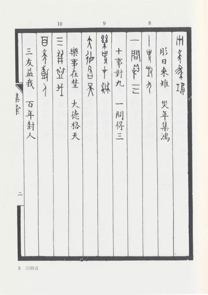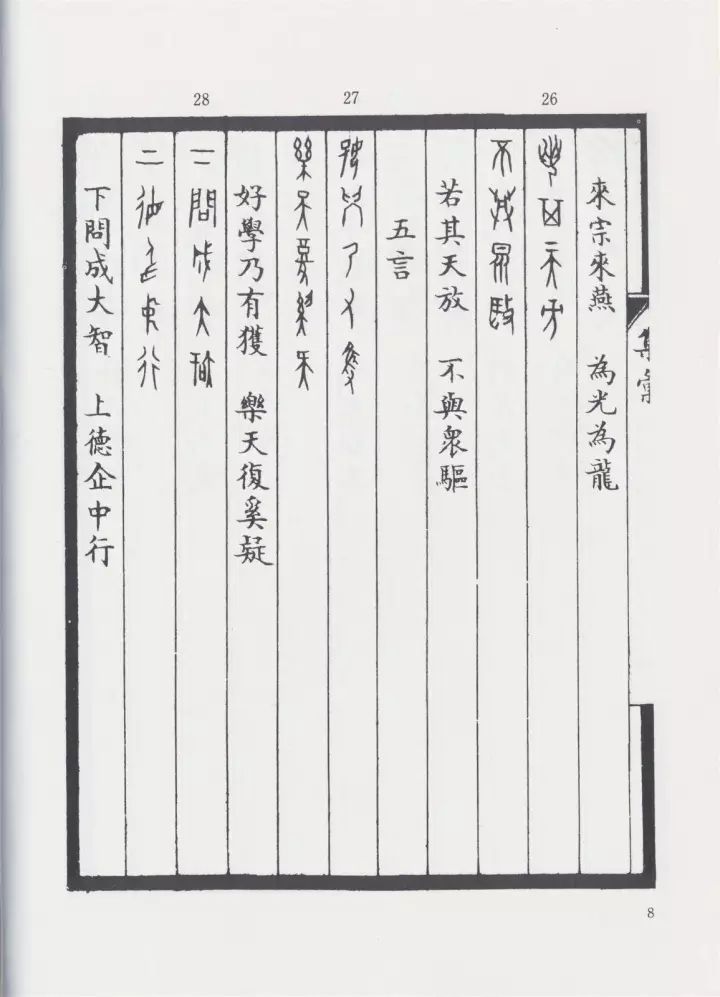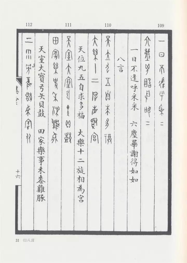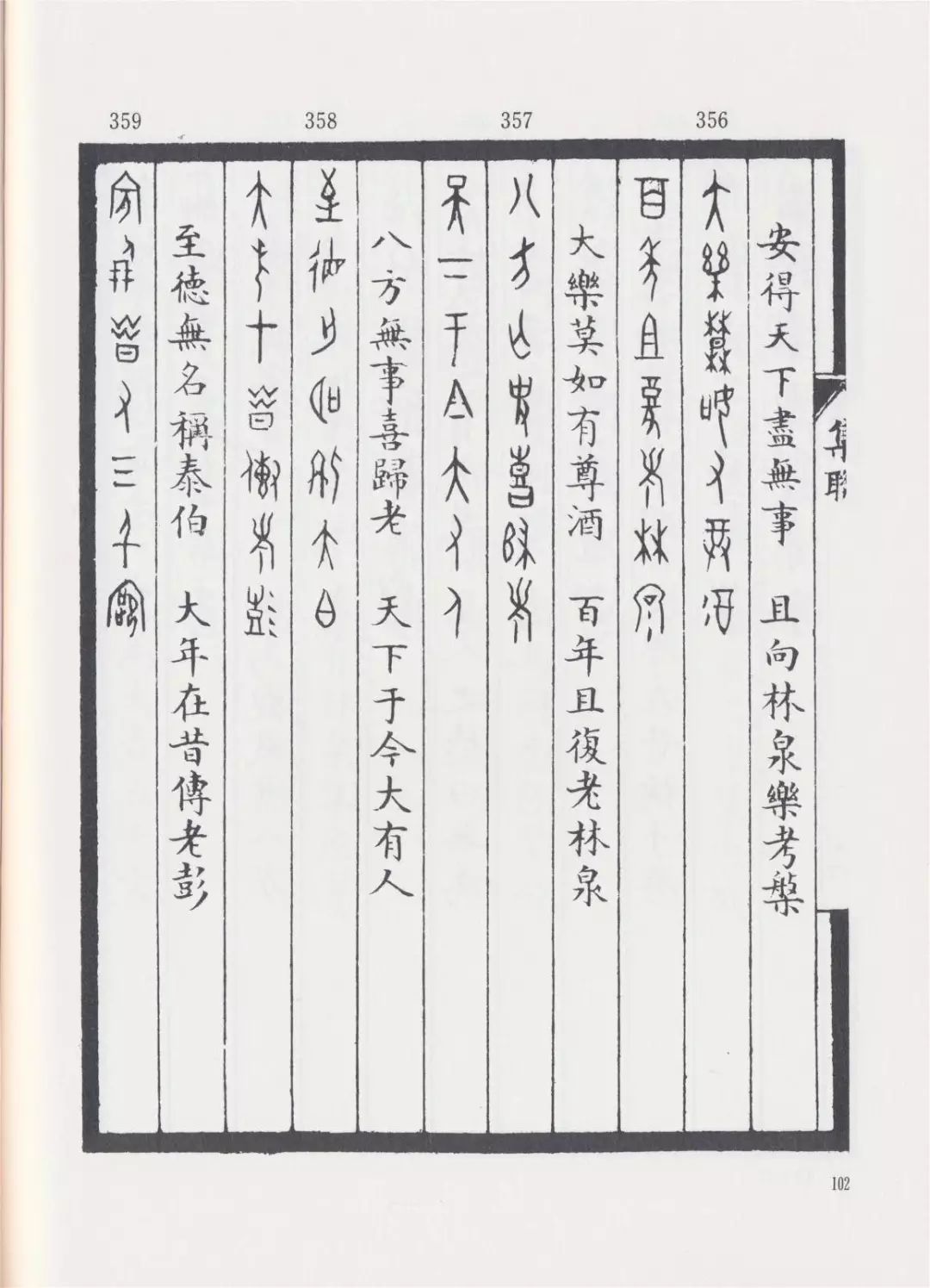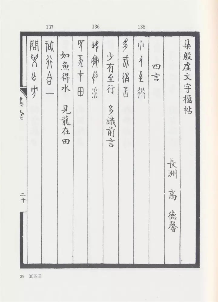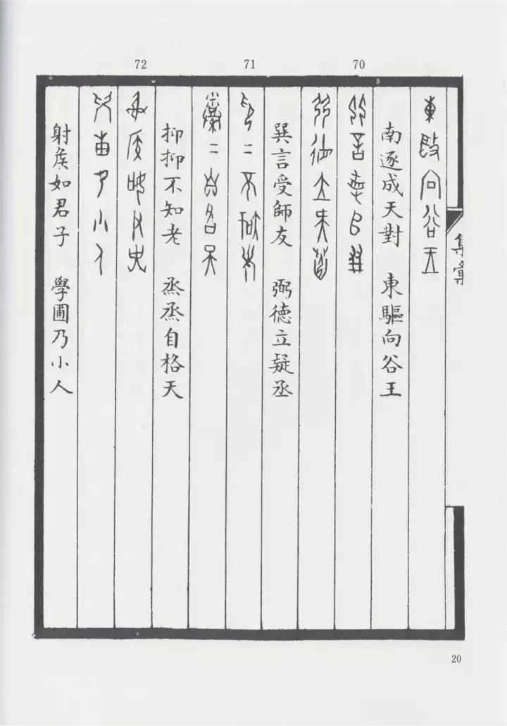 本篇虽名为《殷墟甲骨文楹帖汇编》,但由于《甲骨文墨场必携》本所收各家集联字迹更为清晰,故选用该本图版整本扫描,这里略去了书中日文注释,主要提供楹联图片,以期可解广大甲骨文书家与爱好者之渴。遗憾的是,由于《墨场必携》本与吉林大学出版社的《汇编》本各家顺序不同,故未将《汇编》中书后姚孝遂所作校订全图呈现,计划他日另作补编。
